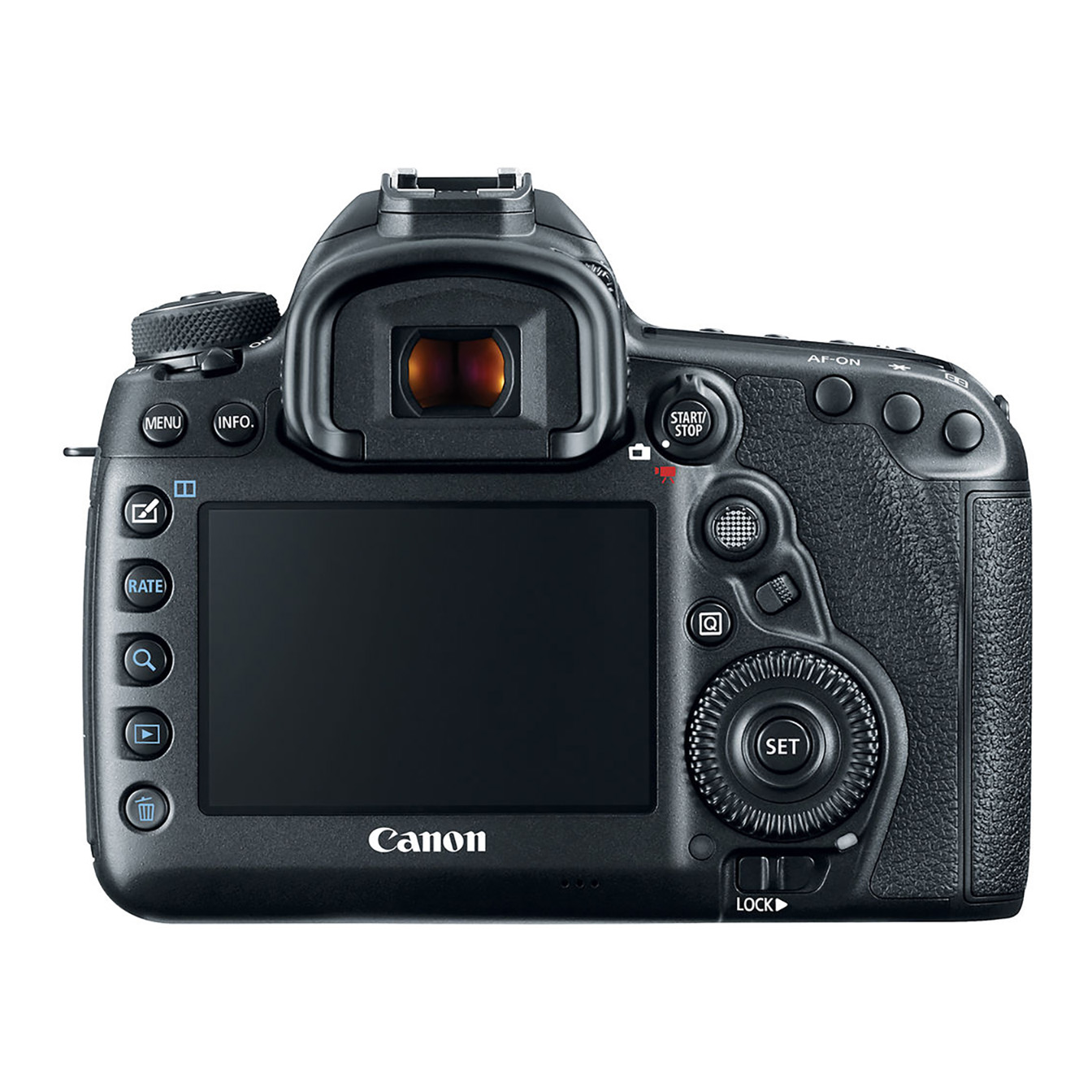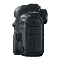 The 5D Mark IV has a refined body design that prioritizes comfort, accessibility, durability, and weather resistance. The Canon N3 remote port has been relocated to the front of the camera, and GPS and Wi-Fi with NFC connectivity have been added, making it a connected camera model.