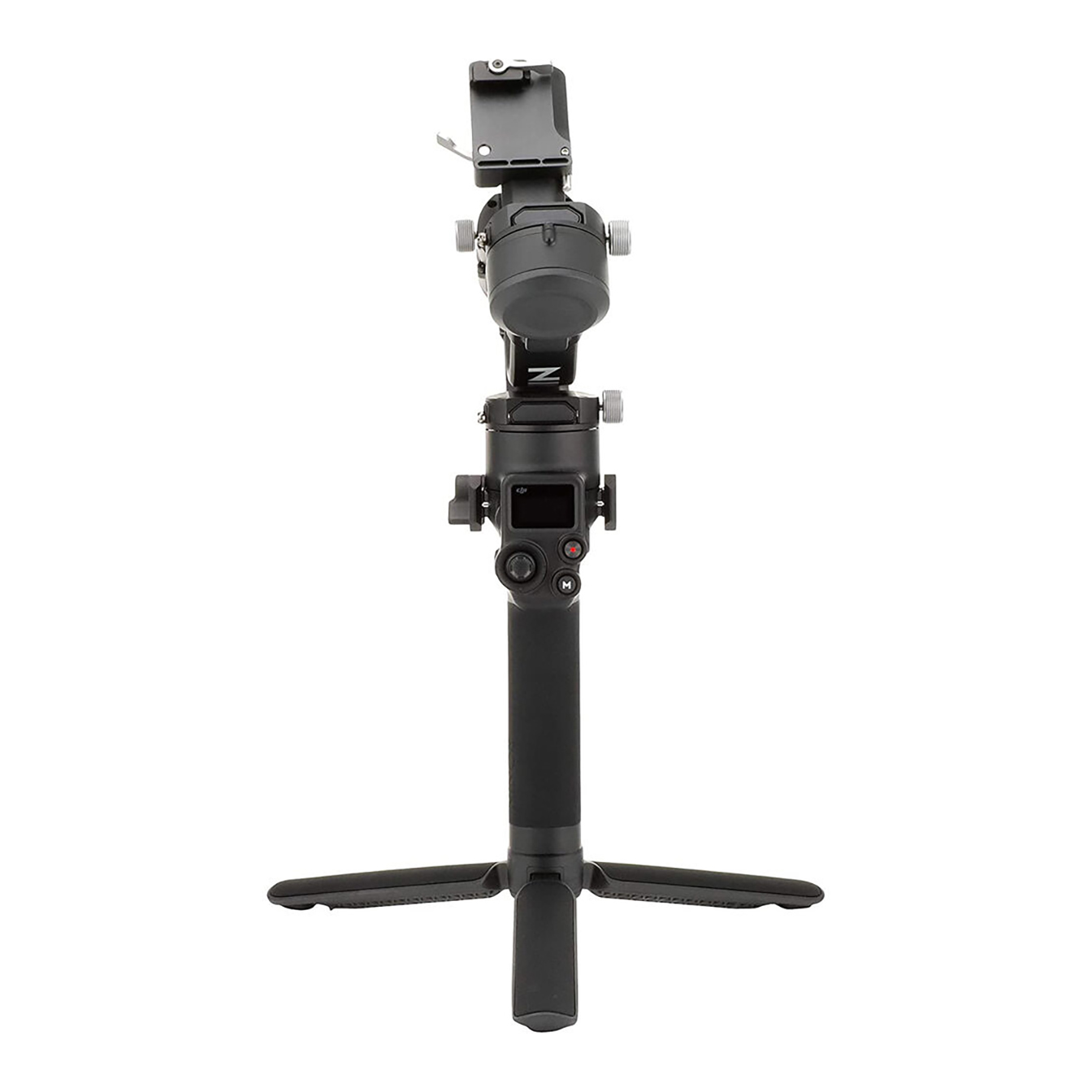 The RSC 2 is equipped with a 1″ OLED black-and-white screen and features a horizontal dial on the front, enabling focus adjustments with the same hand that holds the gimbal. On each side of the gimbal handle, NATO mounts with M4 threads are provided for attaching specialized accessories, like an optional briefcase handle.