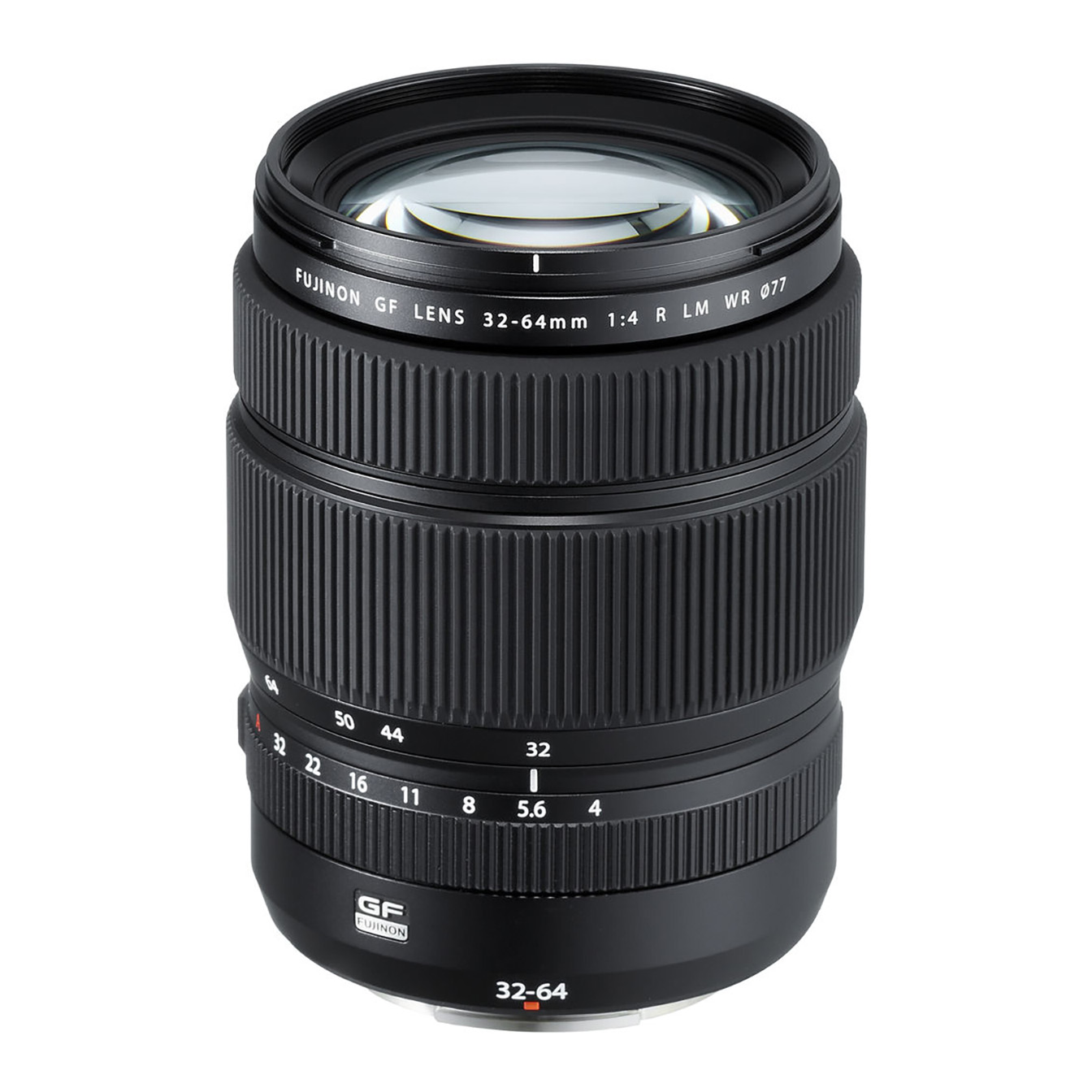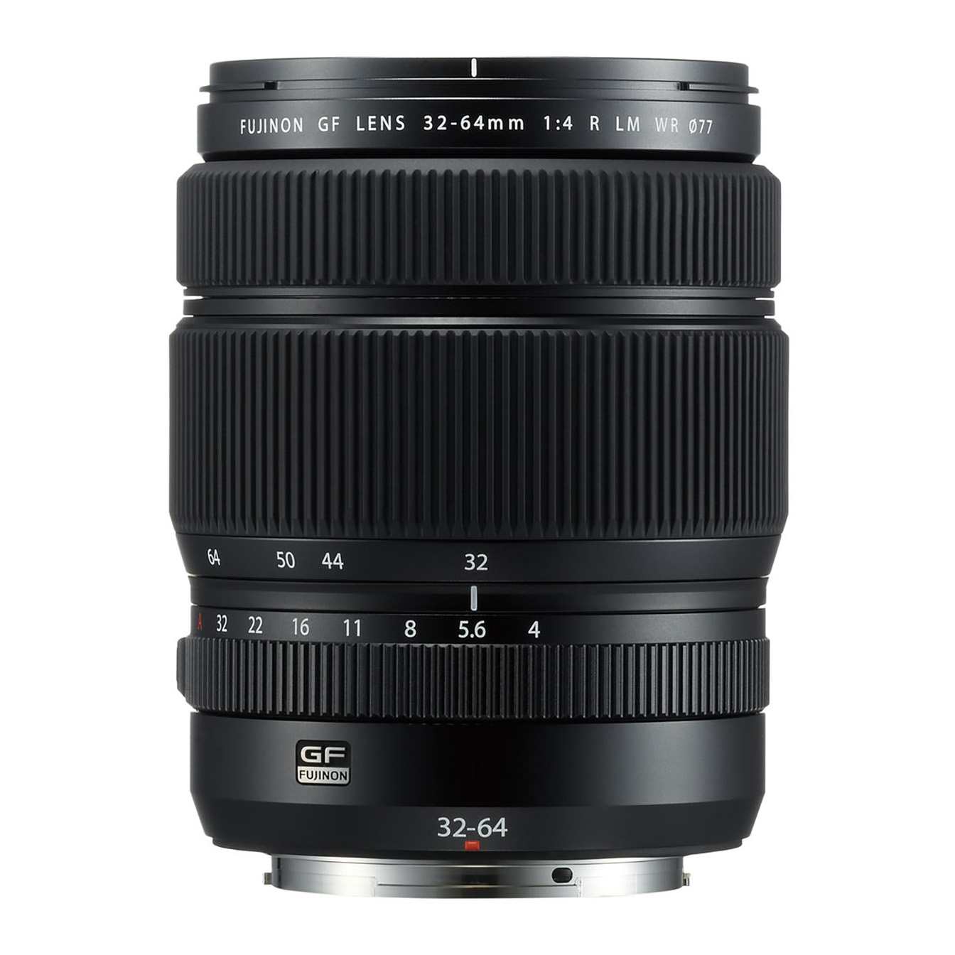 The GF 32-64mm f/4 R LM WR Lens is designed for the FUJIFILM G-mount GFX camera system, providing a versatile wide-angle to normal-length zoom range equivalent to 25-51mm. With a constant f/4 maximum aperture, it ensures consistent performance across the zoom range. The lens incorporates advanced optics, including three aspherical elements, one super ED element, and one ED element, effectively minimizing spherical and chromatic aberrations for enhanced sharpness, clarity, and color accuracy. Its internal focusing mechanism, driven by a linear AF motor, delivers precise, quiet, and fast autofocus performance. The lens features a dust-, freeze-, and weather-resistant construction, along with a hydrophobic fluorine coating on the front element to repel moisture. It also includes a manual aperture ring with a Command position for easy adjustment of exposure settings.