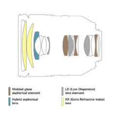 3. Superior Optical Design: The lens incorporates two XR (extra refractive) elements, three LD (low dispersion) elements, three glass-molded aspherical elements, and one hybrid aspherical element. This sophisticated design minimizes aberrations, distortions, color fringing, and chromatic aberrations, resulting in enhanced clarity, color fidelity, and sharpness.